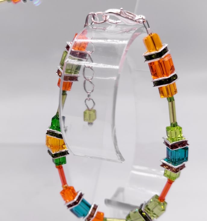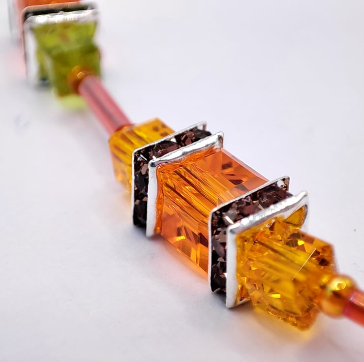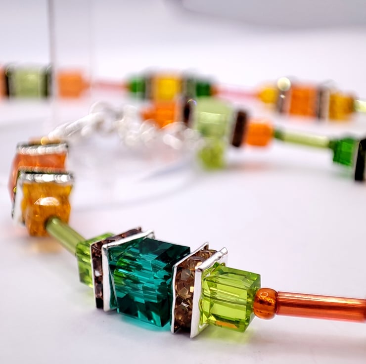 Handmade crystal and silver plated jewellery set includes necklace, bracelet and earrings. I chose the colours of my favourite season, autumn, for this one. All the pieces are available separately as well.
