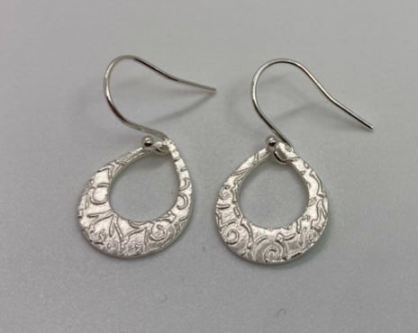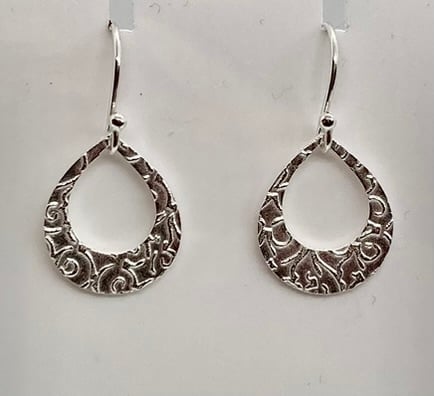 Pure silver teardrop earrings with lovely texture. On sterling silver ear wires.