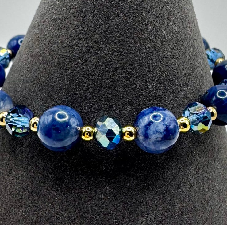 Lapis Beaded bracelet with glass pearl beaded bracelet - Elasticated approx 7''