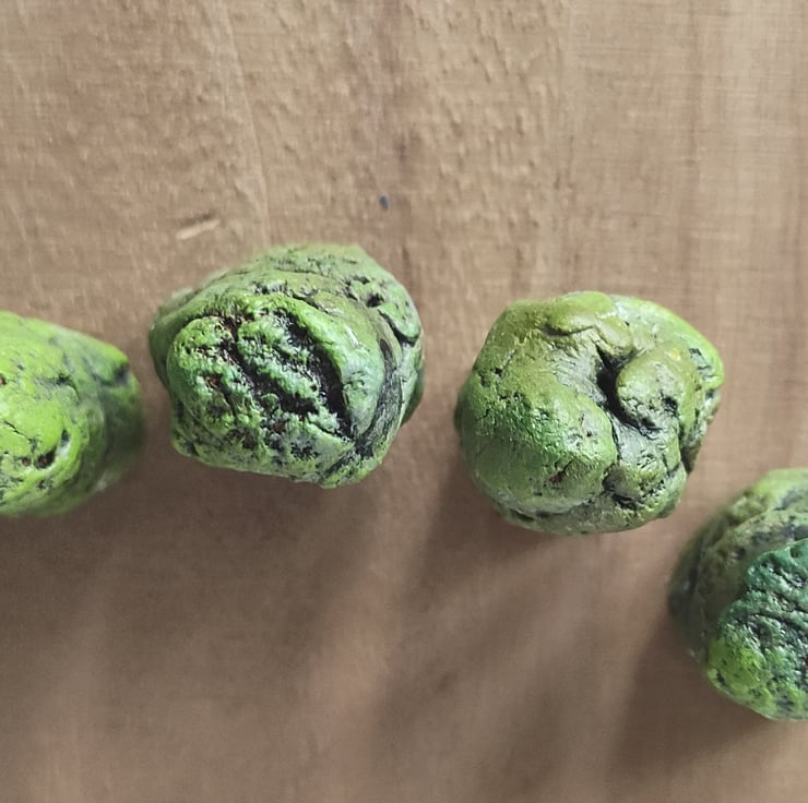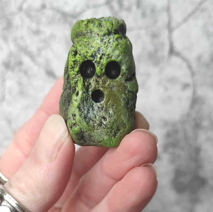 When you look at weathered rocks and stones do you wonder how the moss got there? Most people think that moss spreads by spores and little fragments carried on the wind. I used to be one of those people until I managed to spot a couple of these adorable stone moss gatherers creeping in and out of a rock wall. These incredibly shy and nervous fellows spend their entire lifetime careful carrying baby mosses and their spores all over the earth and depositing them lovingly on stone surfaces. Now you can have your very own set of stone moss gatherers but please keep a close eye on them or they’ll soon be covering your walls with moss!