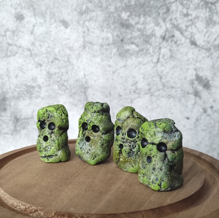 Stone Moss Gatherers, Spirits of the Moss, Tiny Rock Creatures Set of 4