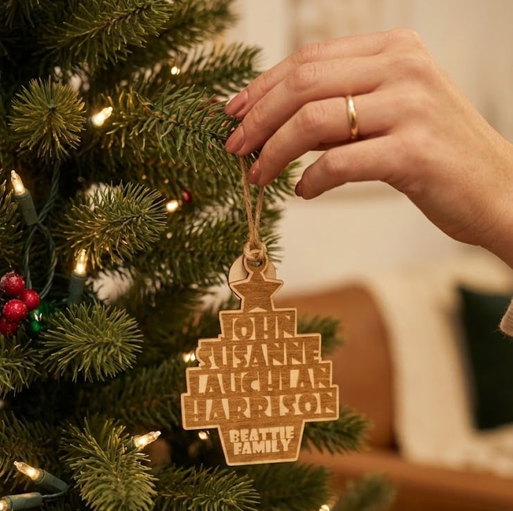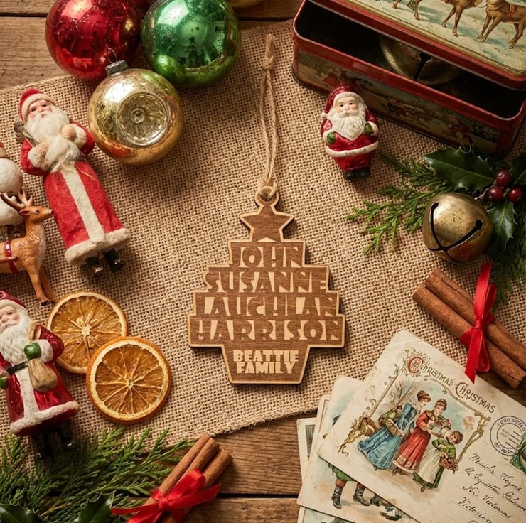 Tired of boring baubles and generic glitter? Say hello to the ultimate festive flex: our Personalized Wooden Family Tree Ornament, handcrafted to resemble a Christmas tree and engraved with the VIPs of your household — yes, even Lauchlan (we see you, legend).