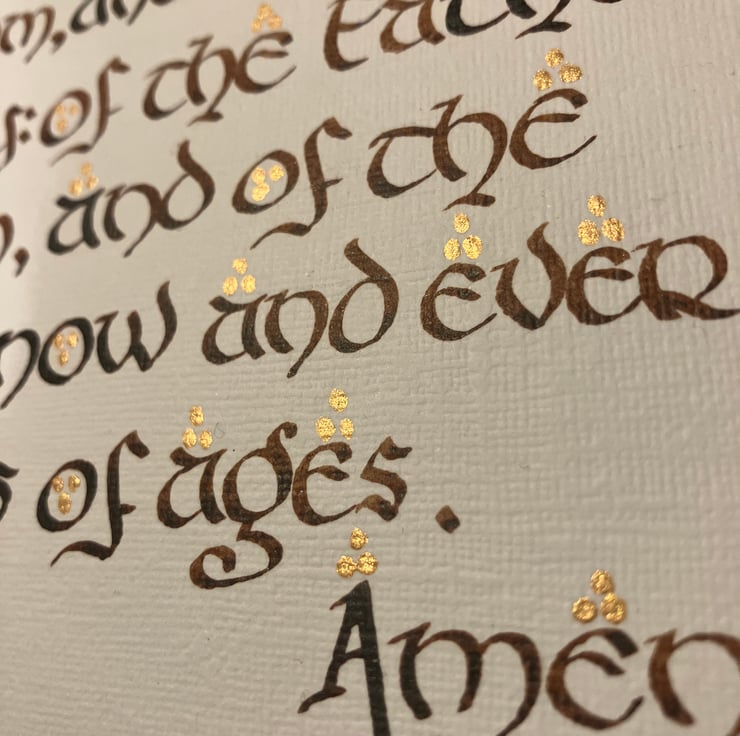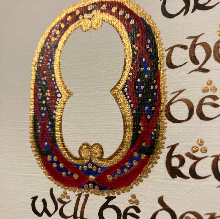 A4 handwritten prayer in a variation of a Celtic font with an illuminated letter. Ink on off-white watercolour paper. Please see photos for details and don’t hesitate to contact me with any questions.