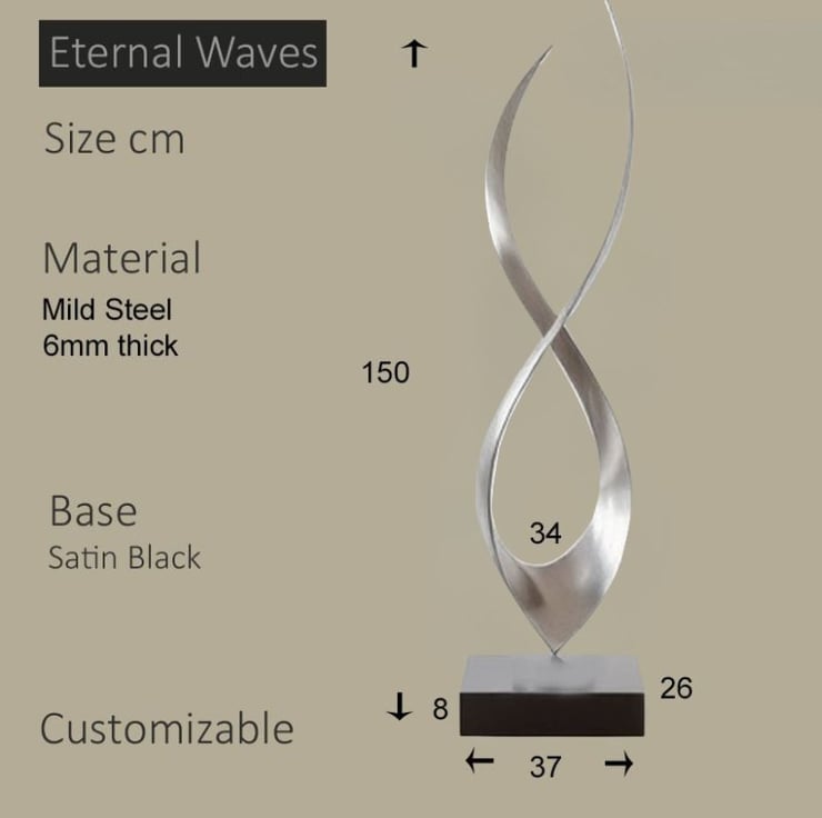 The creation of the "Eternal Waves" sculpture was inspired by the natural, endless rhythm of ocean currents and the timeless beauty of flowing water. The design seeks to capture the dynamic motion and serenity of waves, symbolizing continuity and the eternal cycle of nature. The intertwining curves evoke a sense of harmony and movement, reflecting the ever-changing yet perpetual essence of the sea. Crafted with sleek, modern lines, the sculpture embodies both fluidity and strength, making it a captivating centerpiece that celebrates the enduring power and grace of the ocean’s eternal waves.