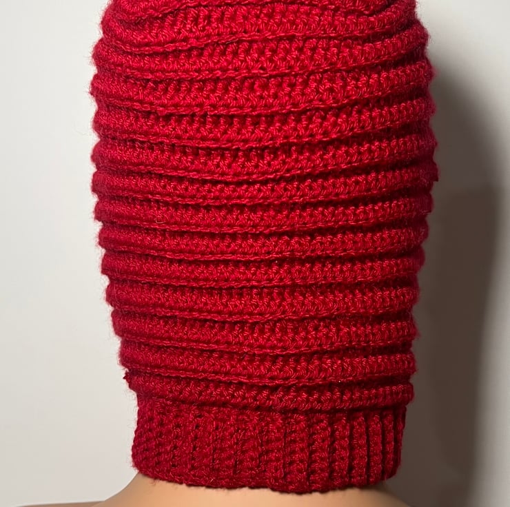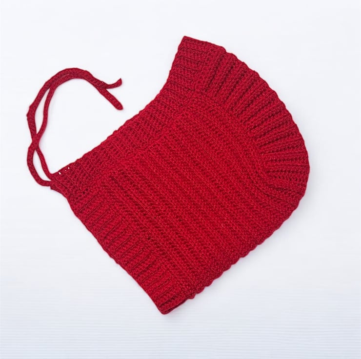 Stunning cranberry red colour with ribbing and tie string on the side easy to tie up