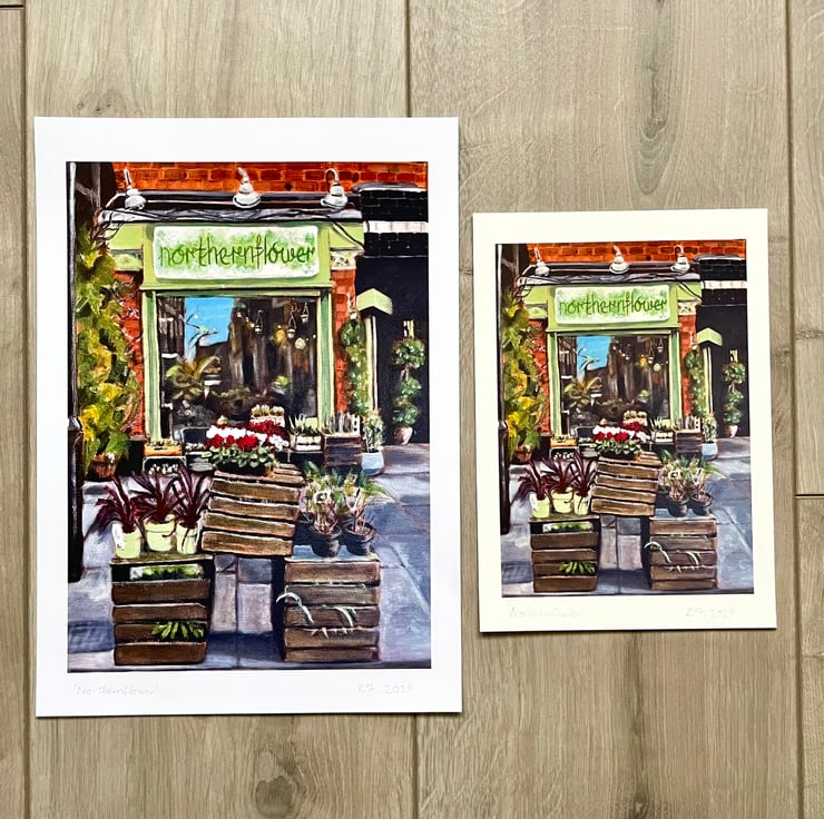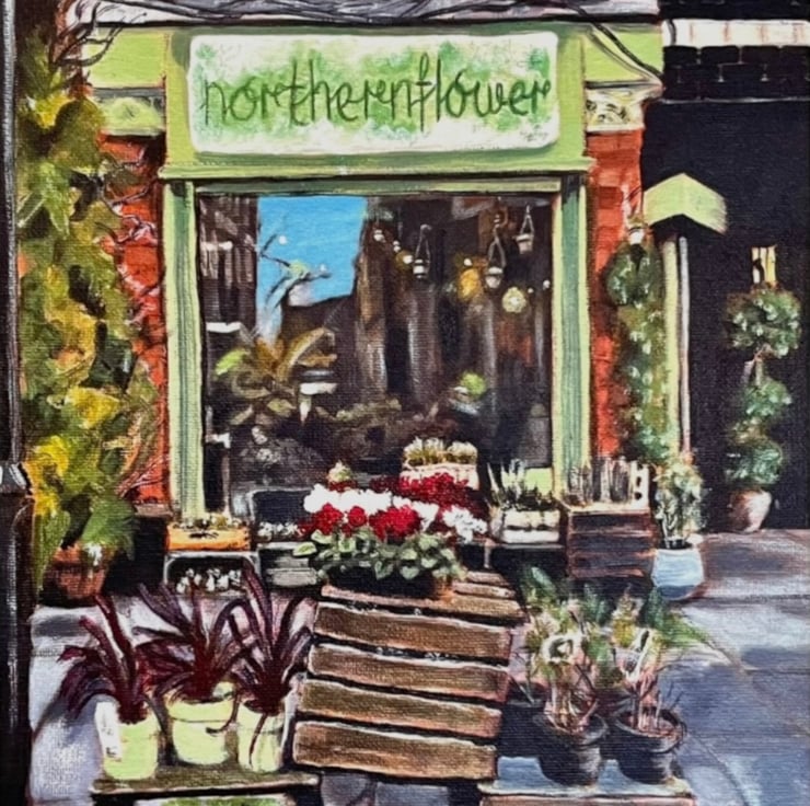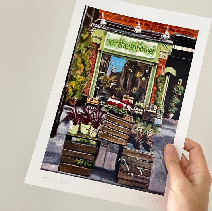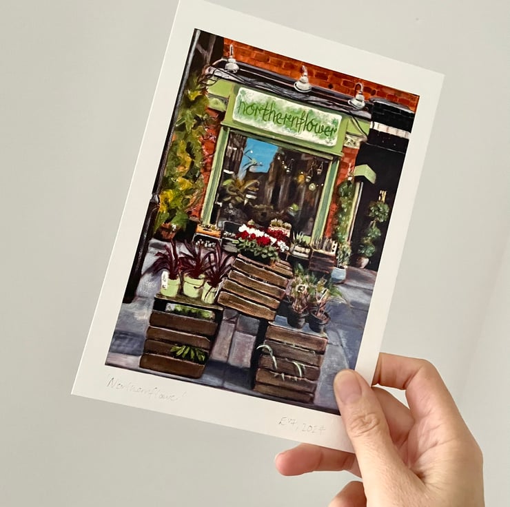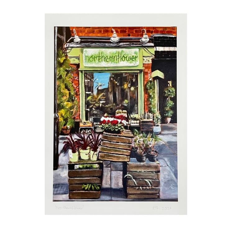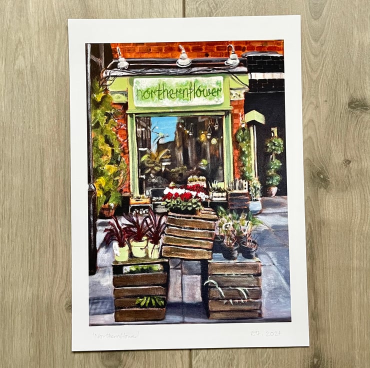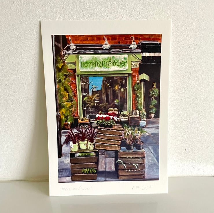 This is a high quality art print of my original acrylic painting of the florist Northernflower shopfront located in Manchester, England, Northern Quarter.