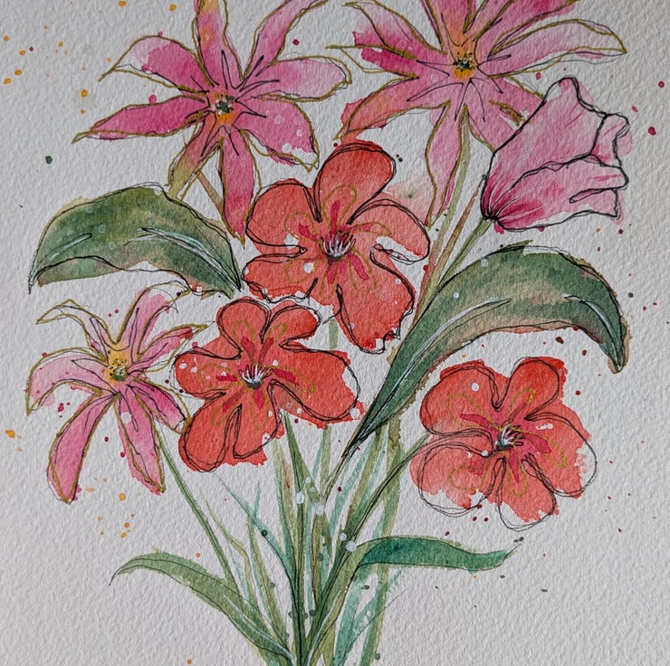 A5 unframed, original watercolour abstract floral painting inspired by the colours of summer.