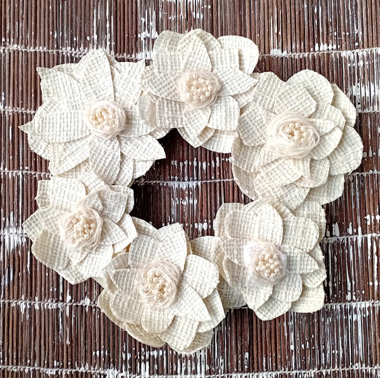 Round wreath size: 27-29cms diameter to outer edges of petals.