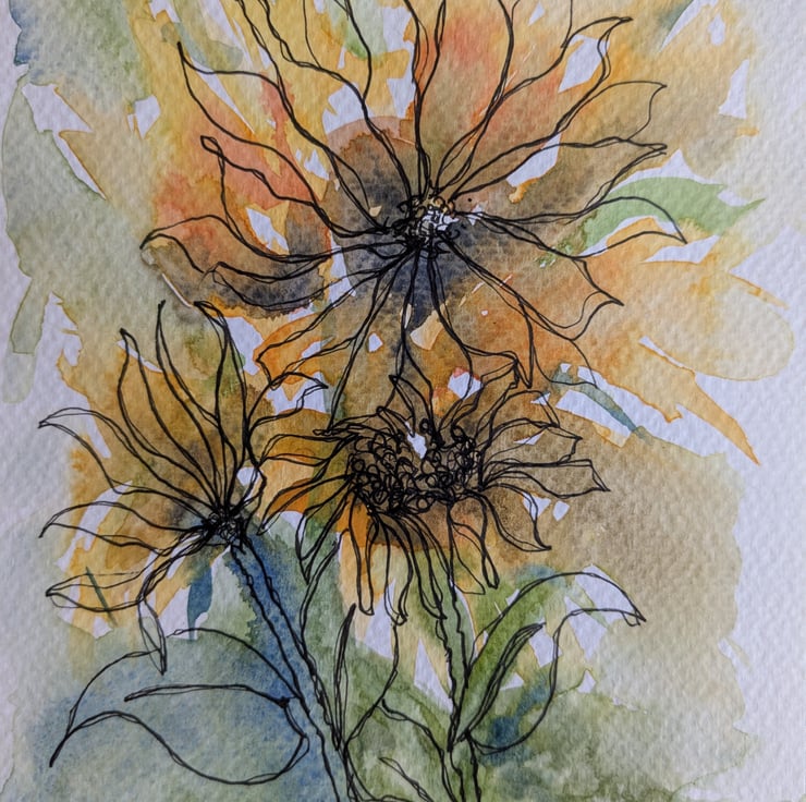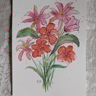A5 unframed, original watercolour abstract floral painting inspired by the colours of late summer.