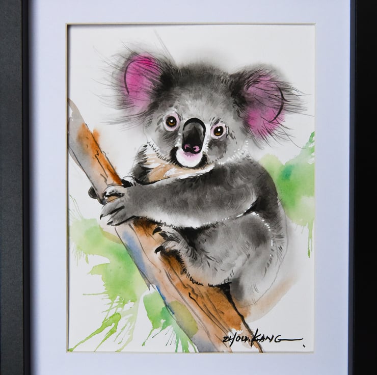 An original watercolour painting of a Koala painted on high quality paper. It is a fun and amusing take on animals and will surely bring smiles.