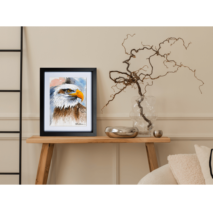 An original watercolour painting of an eagle hand-painted on high quality paper. It is a fun and amusing take on animals and will surely bring smiles. Thoughtfully made and one of a kind, it makes a perfect gift or present for birthdays, anniversaries, special occasions—or simply to brighten someone’s day.