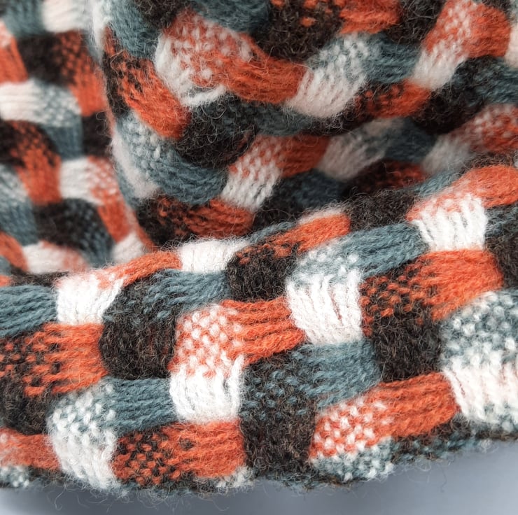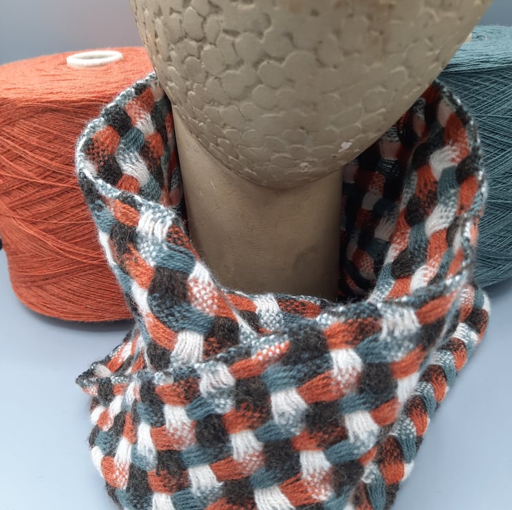 This weave structure invites colour play and has become one of my favourites for that reason. I have a lot of fun trying out a mix of familiar and more challenging colour combinations and seeing what happens. On the small-wearable scale of a cowl, it’s often surprising what works.