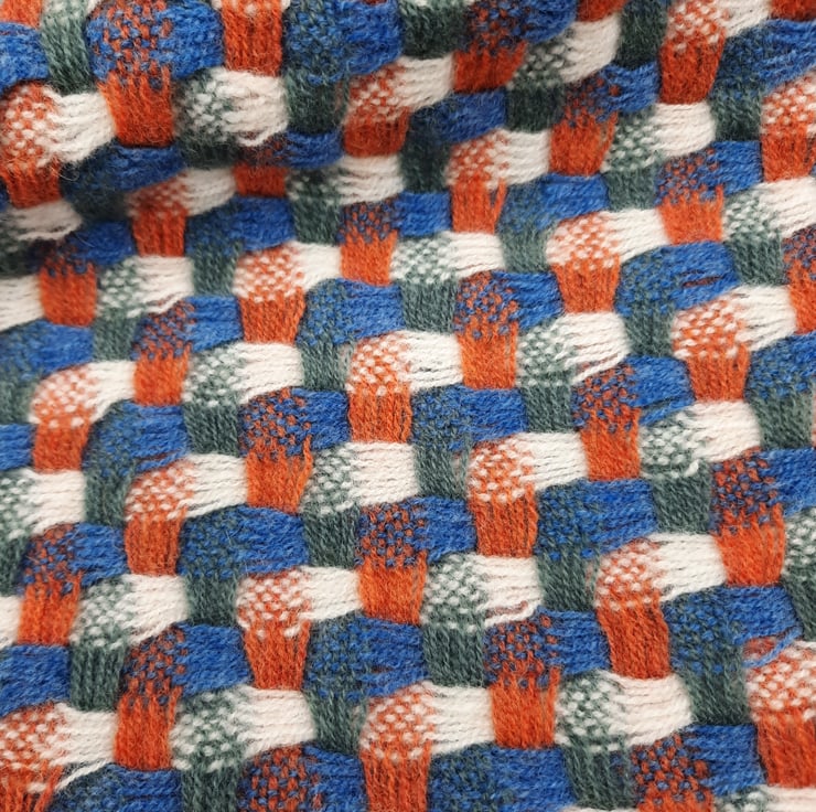 This weave structure invites colour play and has become one of my favourites for that reason. I have a lot of fun trying out a mix of familiar and more challenging colour combinations and seeing what happens. On the small-wearable scale of a cowl, it’s often surprising what works.