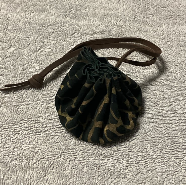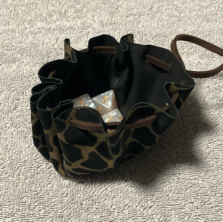 The black and golden brown patterned leather is soft and the draw string is made from a black coloured leather lacing.