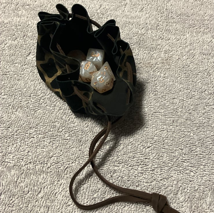 Black / golden brown patterned - coloured soft leather drawstring pouch (dice NOT included)