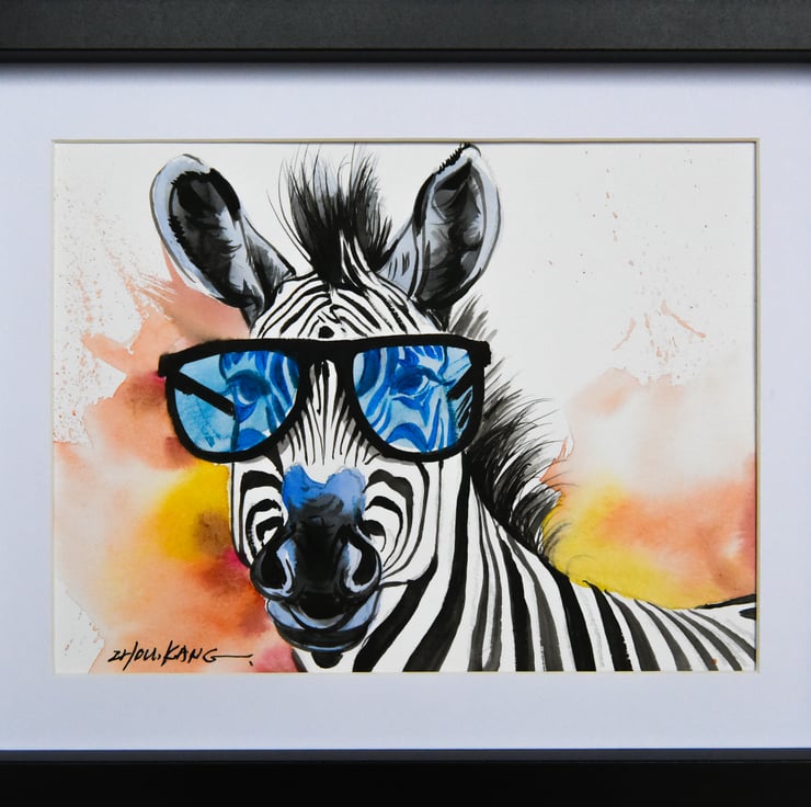 An original watercolour painting of a zebra painted on high quality paper. It is a fun and amusing take on animals and will surely bring smiles.