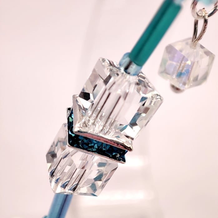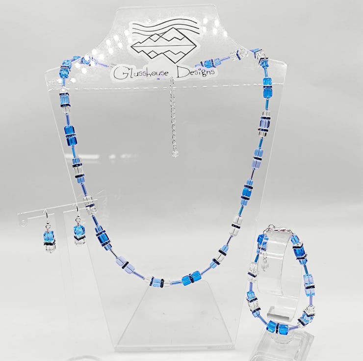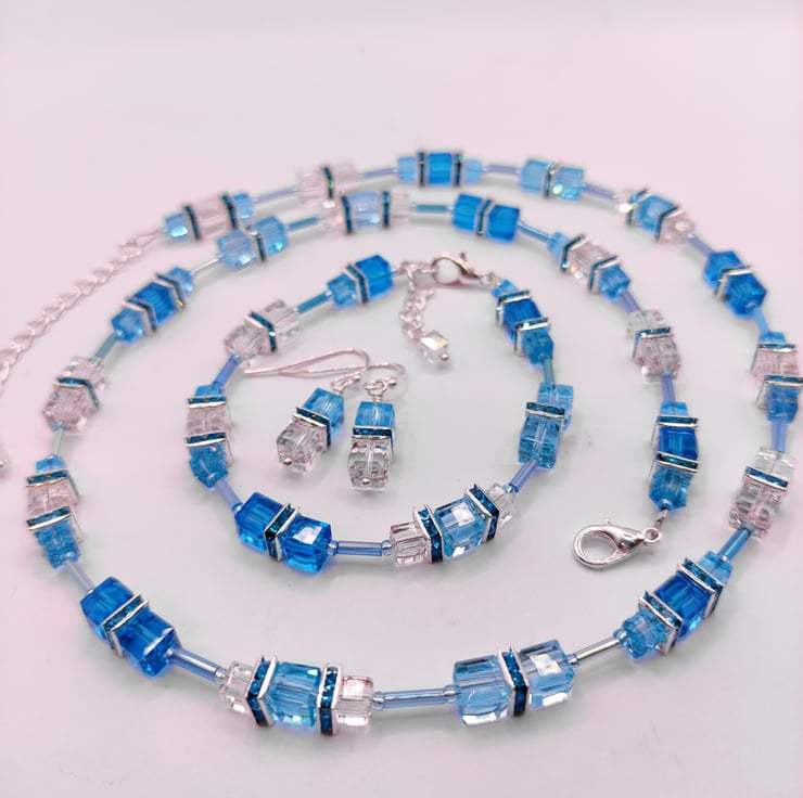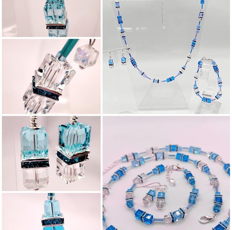 Handmade crystal and silver plated jewellery set includes necklace, bracelet and earrings. All the pieces are available separately as well.