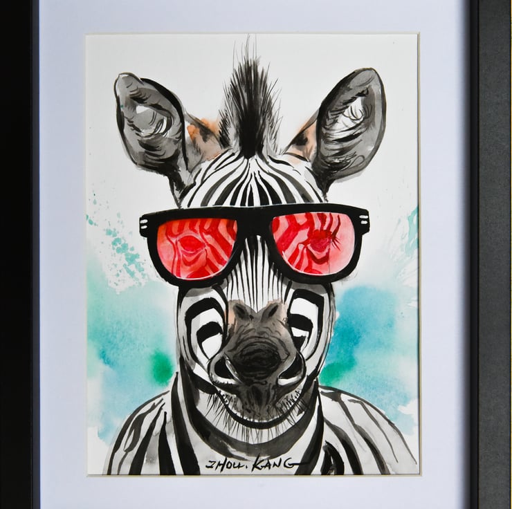 An original watercolour painting of a zebra painted on high quality paper. It is a fun and amusing take on animals and will surely bring smiles.