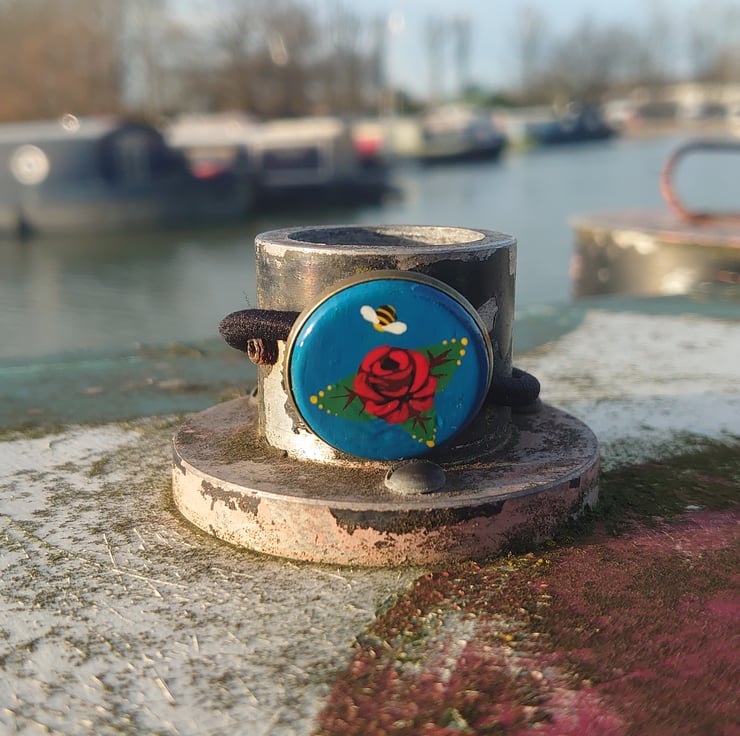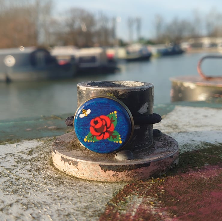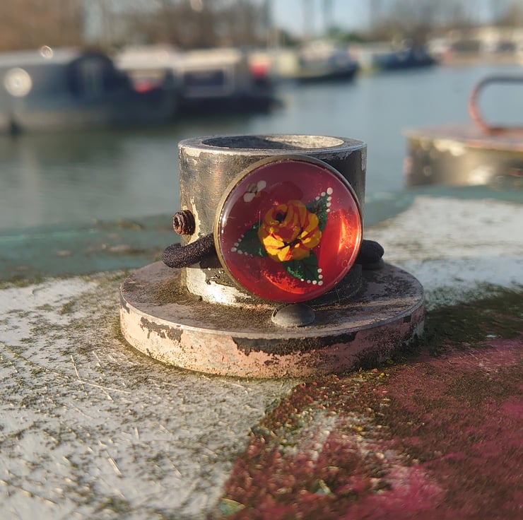 Knobstick rose is the name given to a particular regional style of the well known canal art, roses and castles. They are one of the best loved regional styles on the inland waterways today.