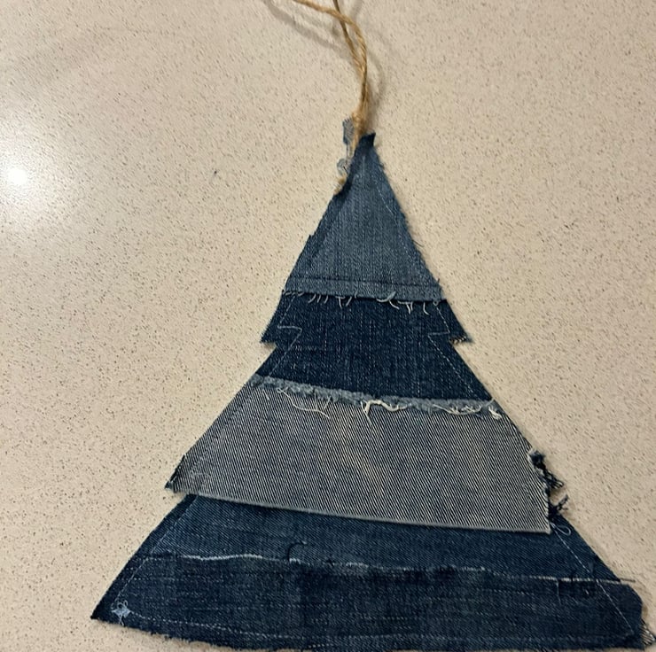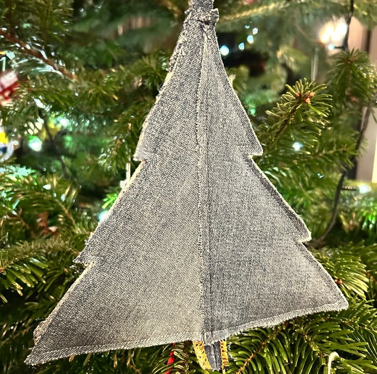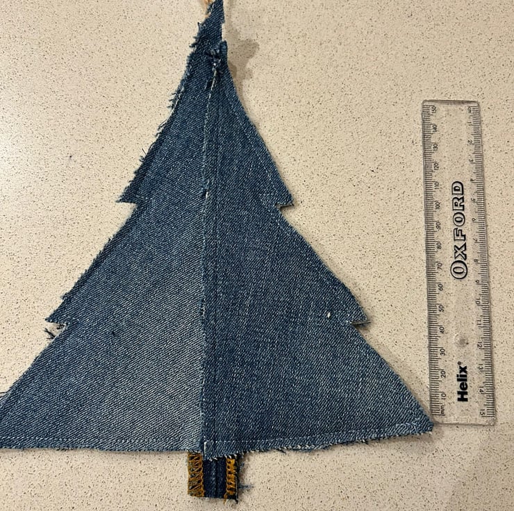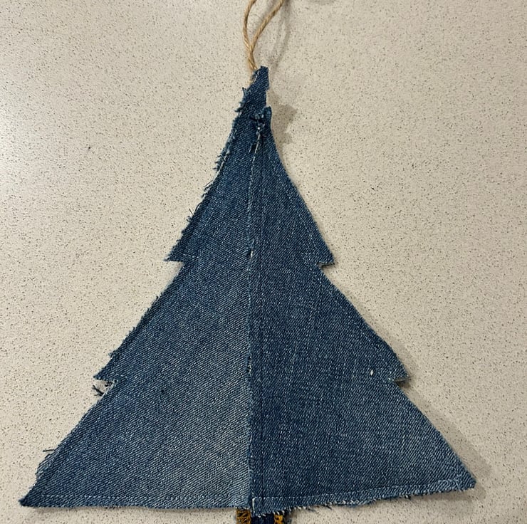 Rather than following a set pattern, each tree is inspired by the particular piece of denim I’m working with at the time. The weight, colour, seams and wear of the fabric help steer the shape and details, so the material itself leads the design. Because of this, no two trees are ever the same — each one has a very individual charm.