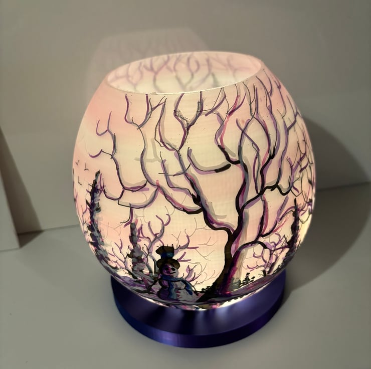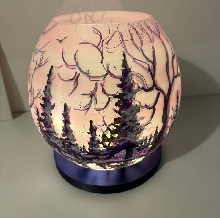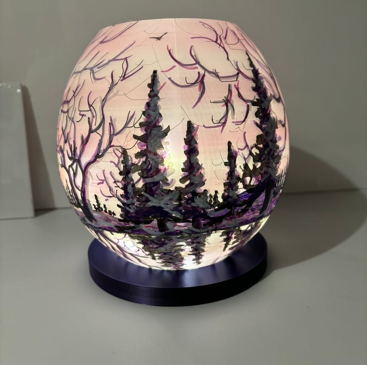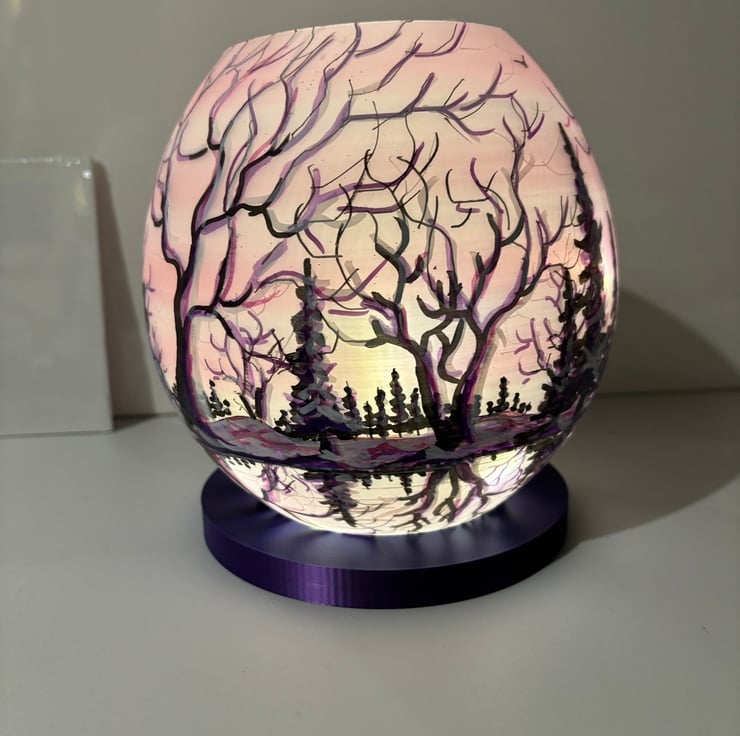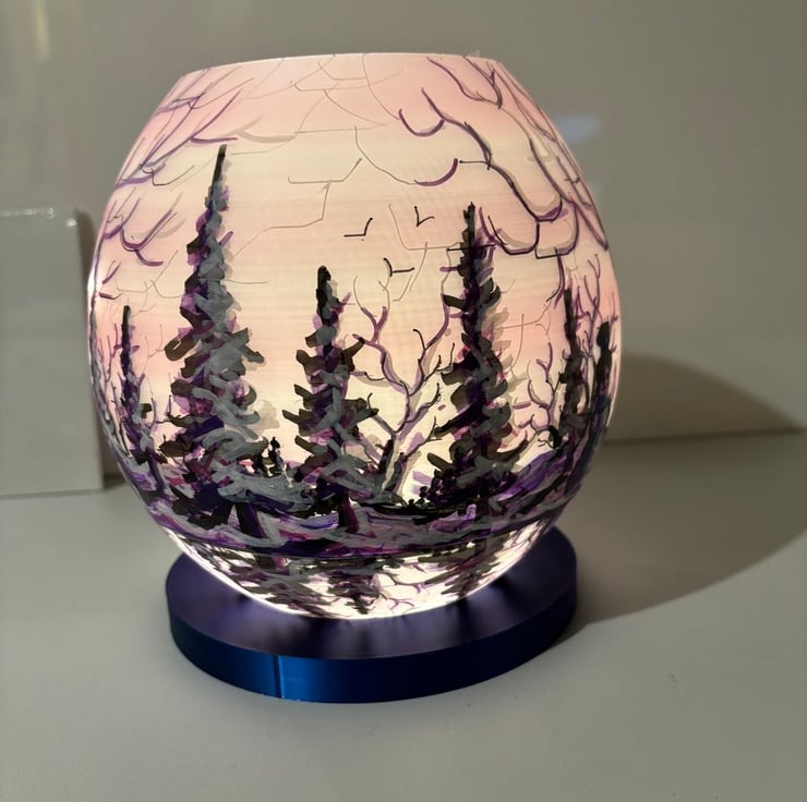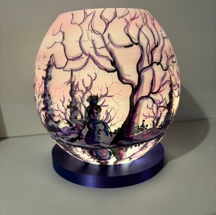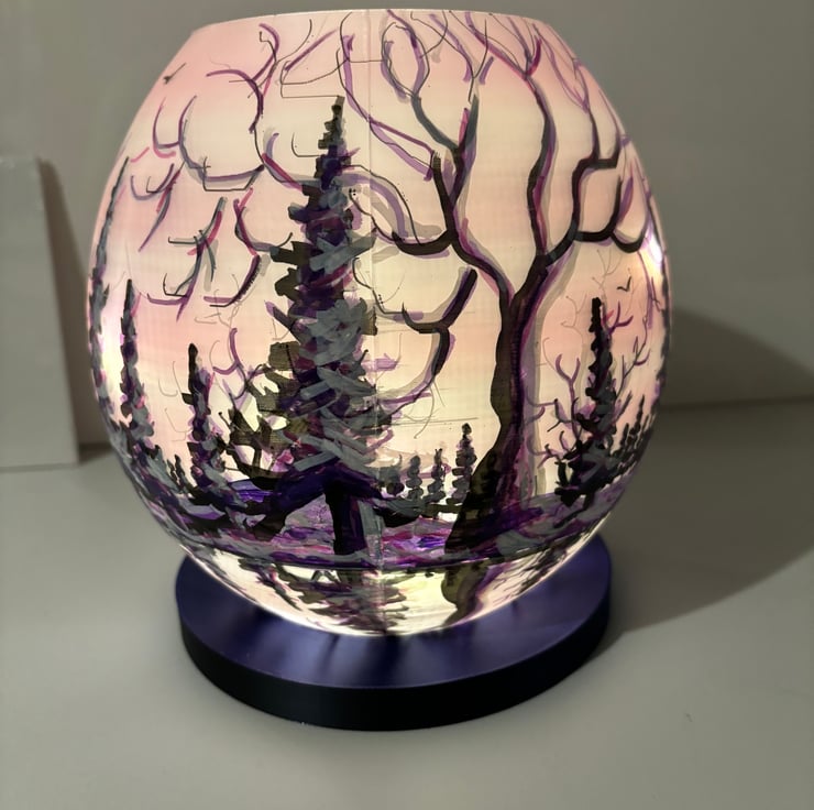 A hand painted and sealed globe lamp by Andrew Jenkins