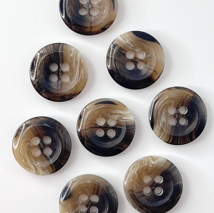 This Bigger Bag of 30 Brown Tortoiseshell Trouser Buttons is perfect for your sewing, everyday clothing, knitting, accessorising and crafting makes.