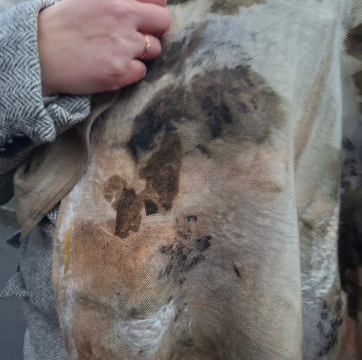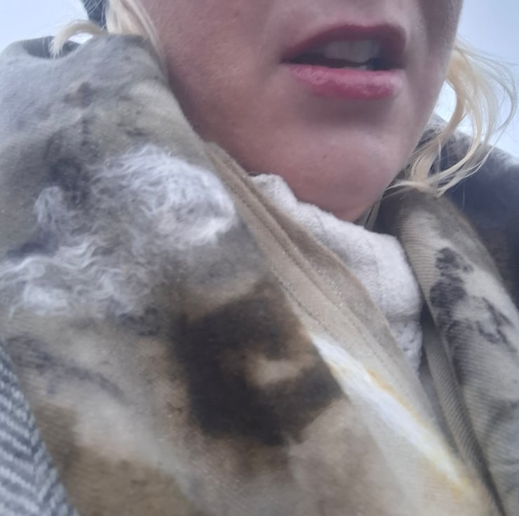 100 % wool soft twill fabric, Fabric Weight (approx): 200 g/m, brand new high quality fabric. It is finished at the edges with natural Jacob sheep wool and tercel top fibers by dry felting.