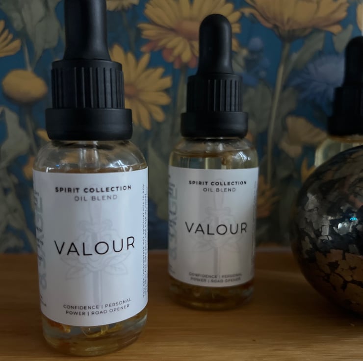 Valour is a road-opening manifestation oil created to support courage, momentum and forward movement when things feel stuck or uncertain.