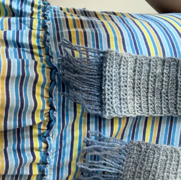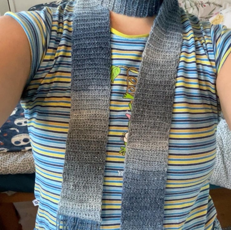 Blue Sparkly Skinny scarf, crocheted by hand, by me!