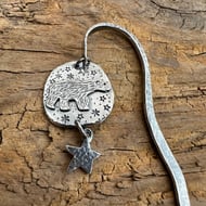 Viking Ship Bookmark made in sterling silver with garnet cabochon.