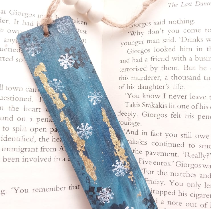 Wooden bookmark, hand-painted with acrylics, embellished with modelling paste.