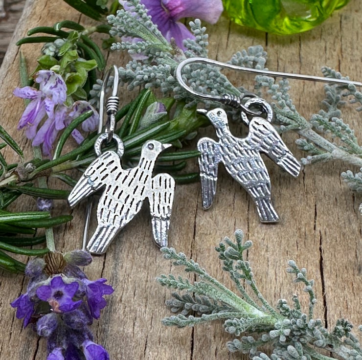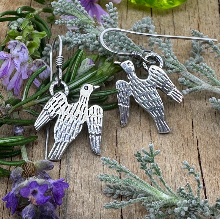 Birds measure approx 20mm x 16mm on handmade sterling silver hooks.