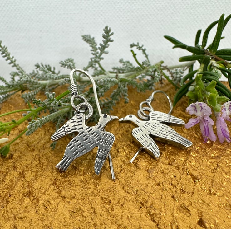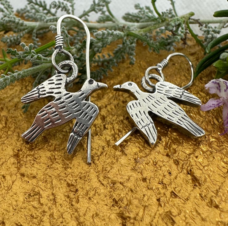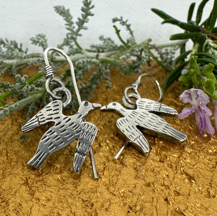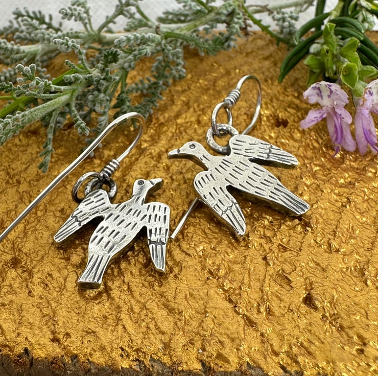 Birds measure approx 20mm x 16mm on handmade sterling silver hooks.