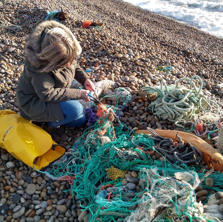 I started creating these mirrors in 2019 when large quantities of fishing gear were washing ashore on our Dorset beaches.