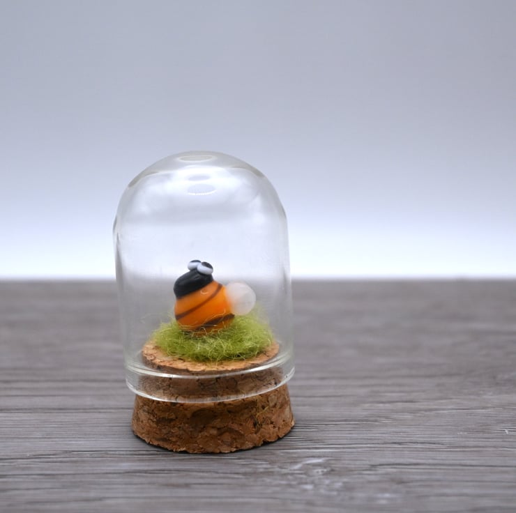 It features green fibre and a handmade lampwork glass bee.