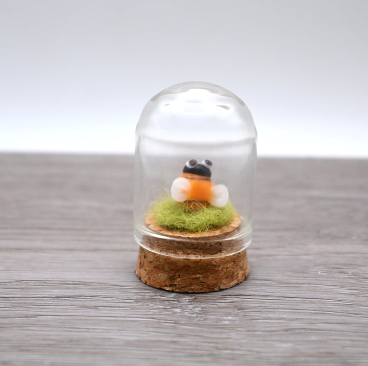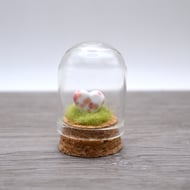A small glass cloche jar with a cork bottom.