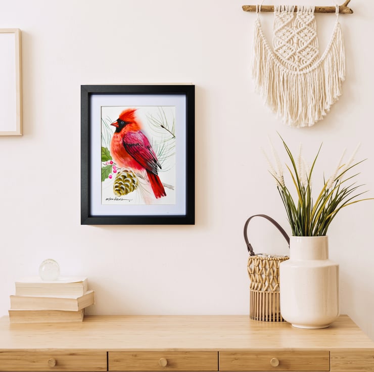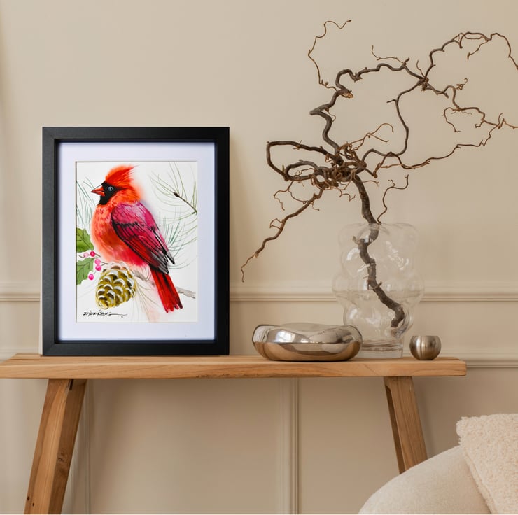 An original watercolour painting of a cardinal bird hand-painted on high quality paper. It is a fun and amusing take on animals and will surely bring smiles. Thoughtfully made and one of a kind, it makes a perfect gift or present for birthdays, anniversaries, special occasions—or simply to brighten someone’s day.