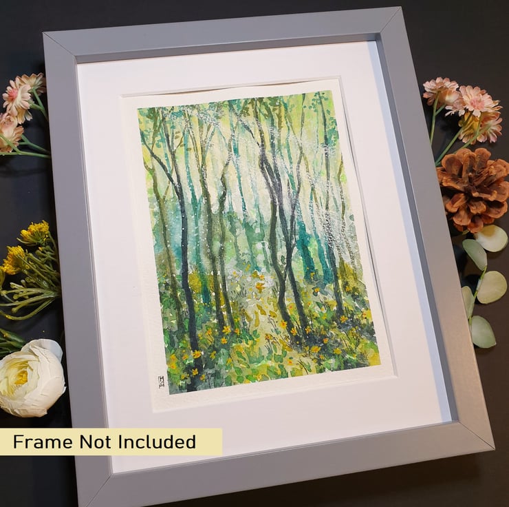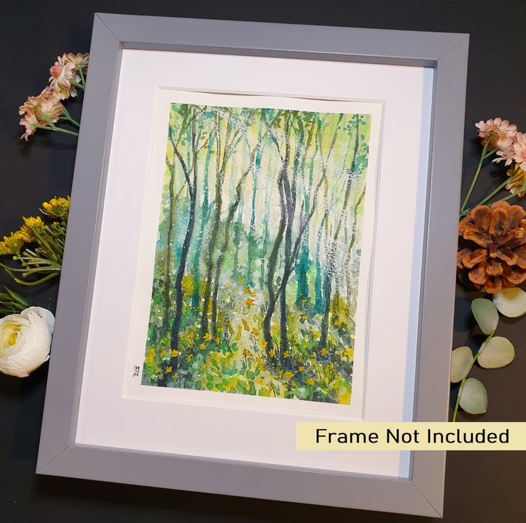 Cool Green Forest, original watercolour painting with mixed media, artwork