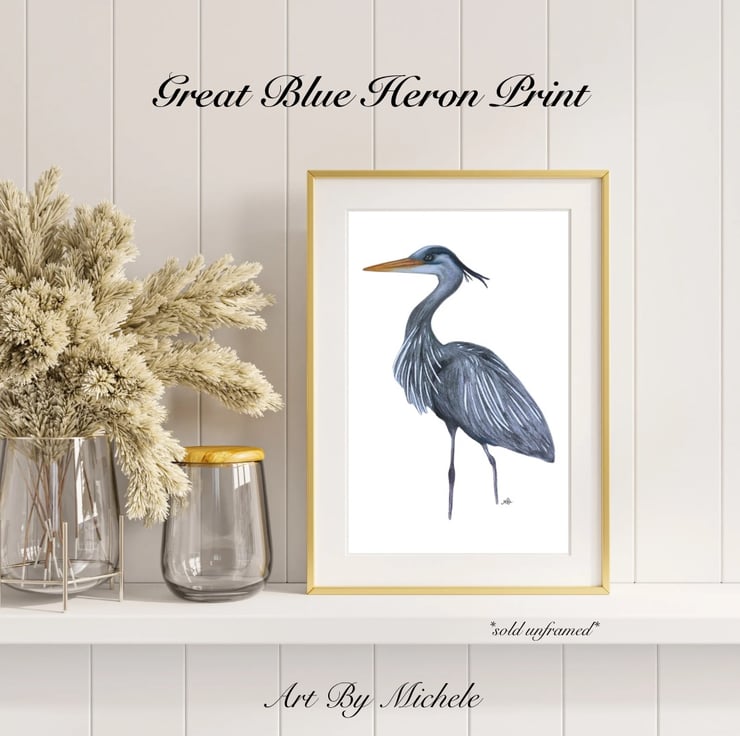 Stunning original, taken from my colour pencil artwork featuring the majestic Great Blue Heron.