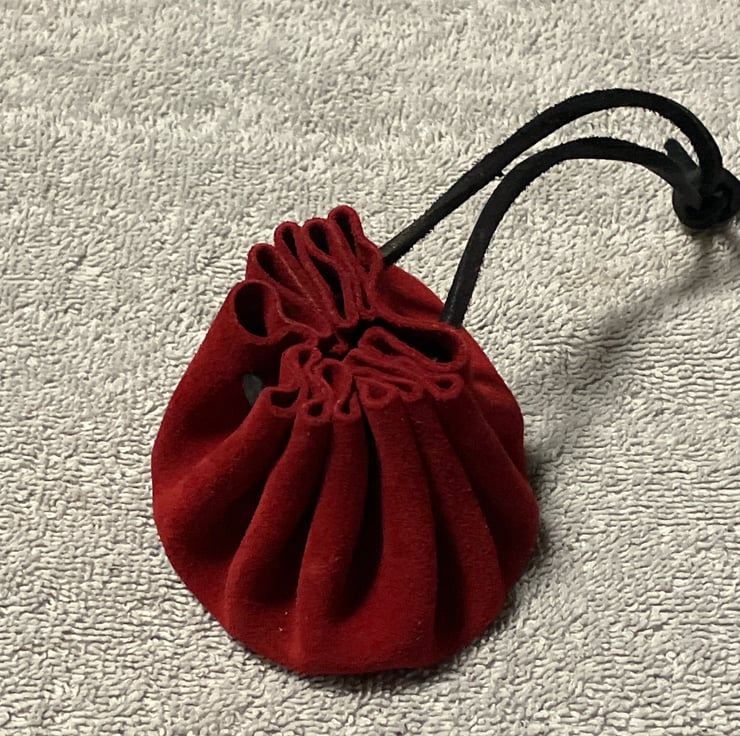 The Red suede leather is firm and the draw string is made from a black coloured leather lacing.