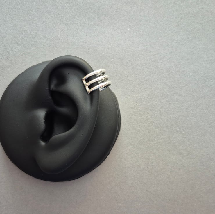 Sterling Silver Three Row Ear Cuff