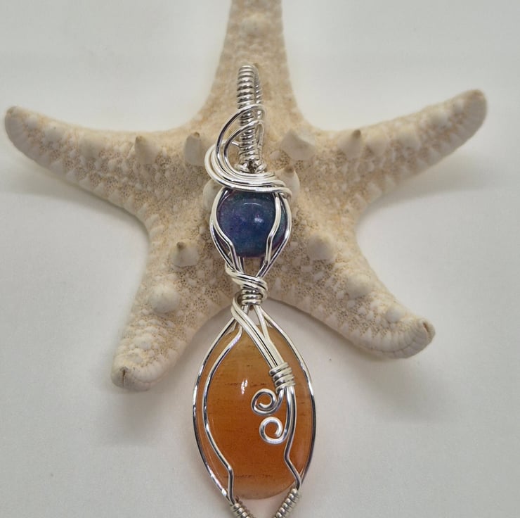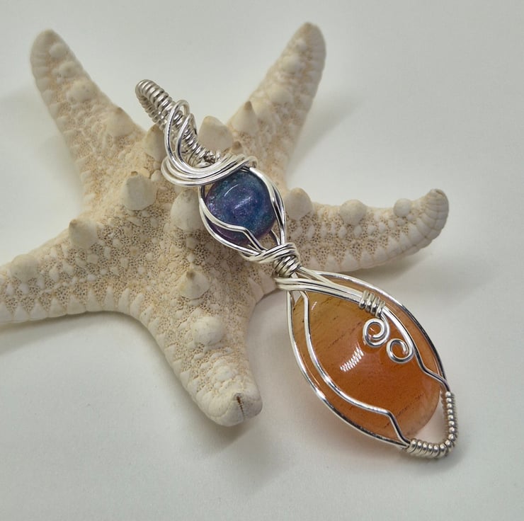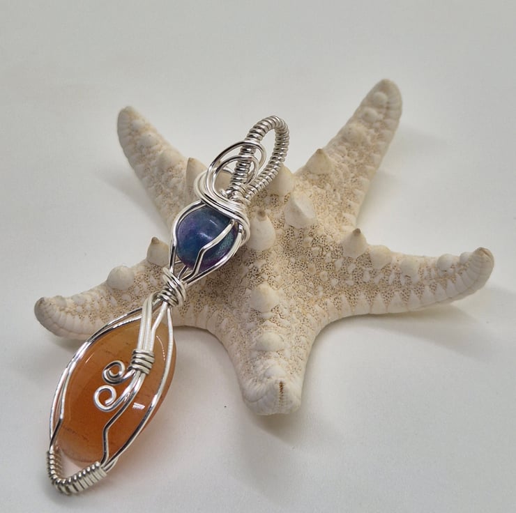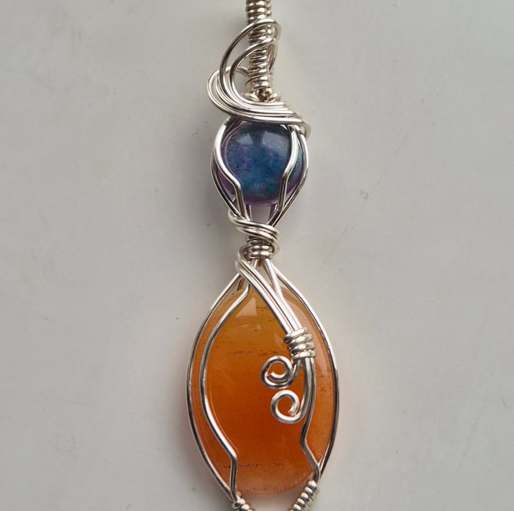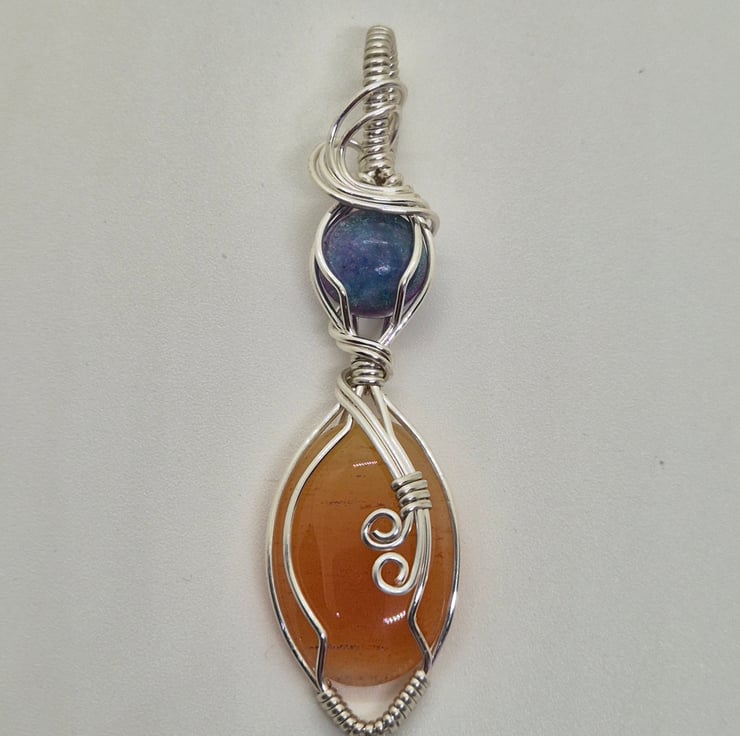Beautiful peach aventurine cabochon, delicately hand wrapped in silver, with a mini resin cabochon to compliment the aventurine.