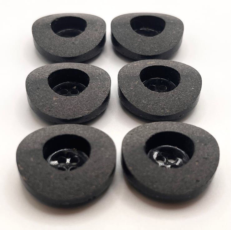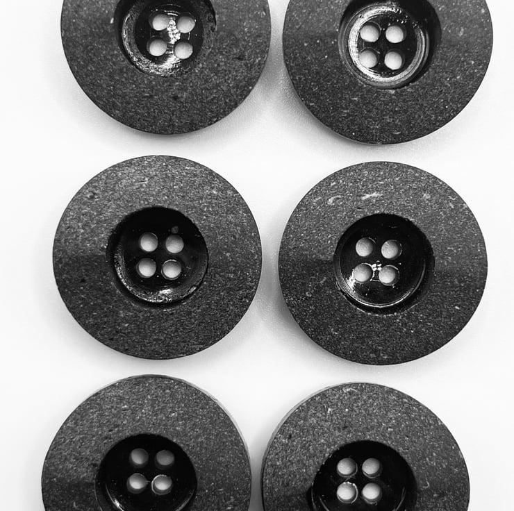 6 Coconut Shell Buttons, Dark Grey, Dish, 23mm Wide, Chunky Rim, Italian Design
