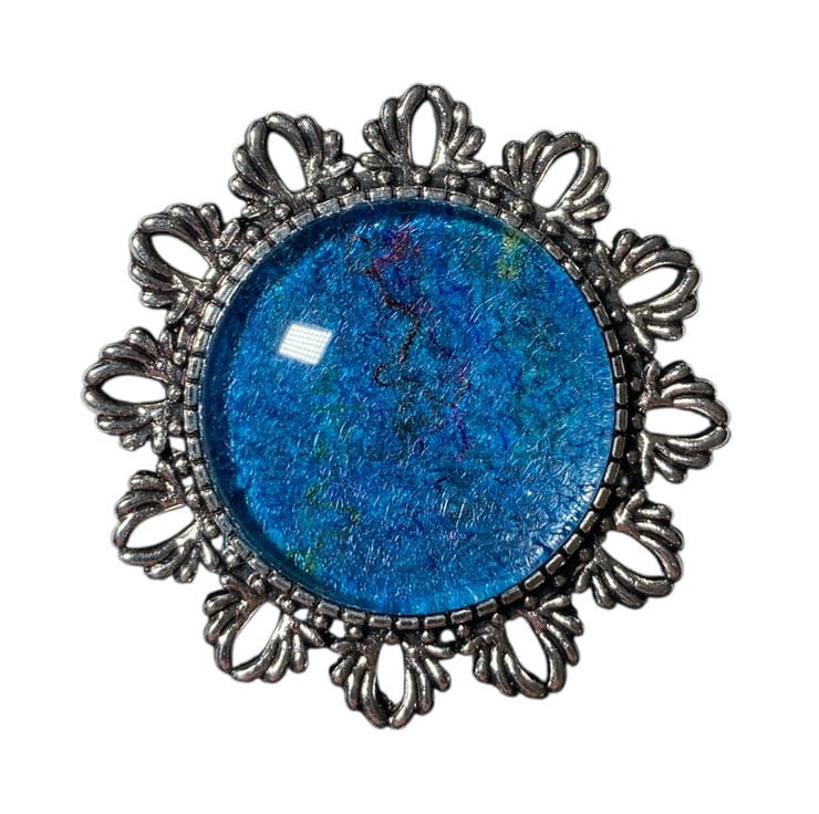 Vintage style brooch, hand made felt with silk fibres, turquoise