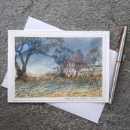 Painted on watercolour paper and mounted onto quality, white card stock, which has a slight texture. The painting is protected by two coats of satin varnish.