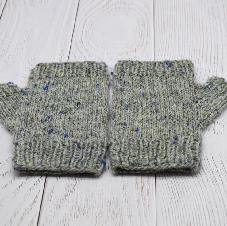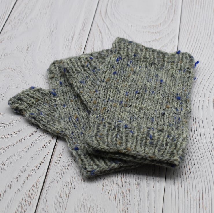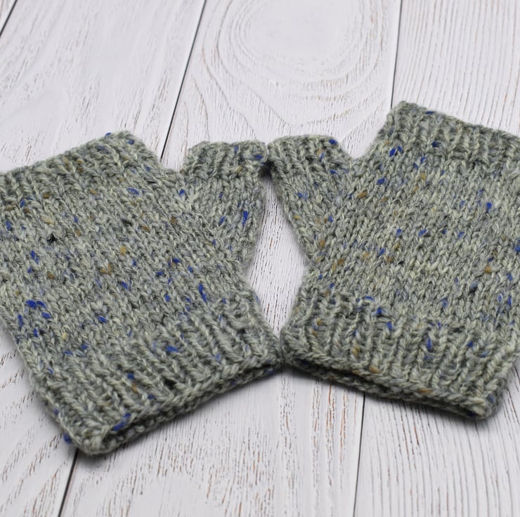 These hand knitted fingerless mittens are great for keeping your hands and wrists warm on those cold winter days.