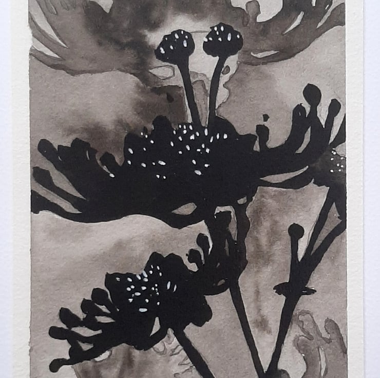 Painted on watercolour paper and mounted onto quality, white card stock, which has a slight texture. The painting is protected by two coats of satin varnish.