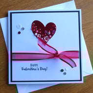 The design has been finished with a frame of black card and mounted onto a white card measuring 14.8cm square. Inside the right hand edge of the card is a strip of lilac and white heart patterned paper with a black card frame.