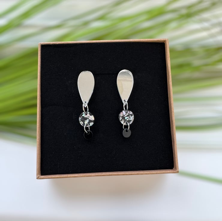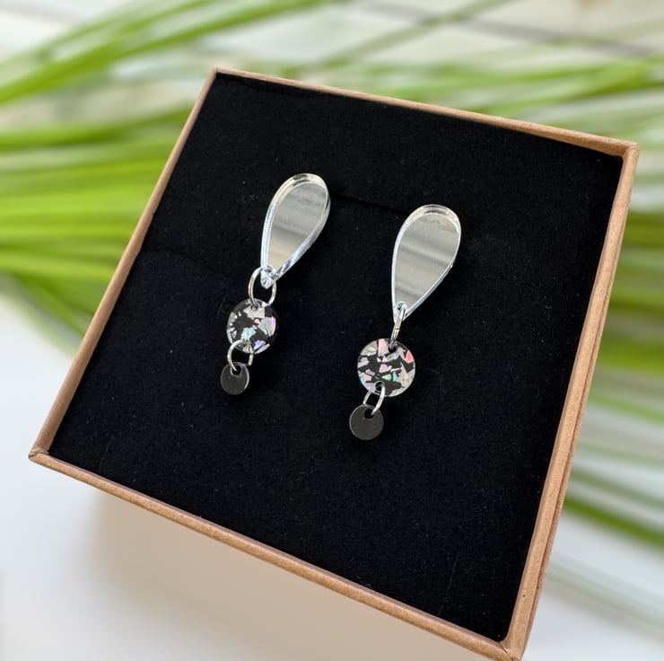 Beautiful monochrome three tier drop acrylic earrings, laser cut with precision.