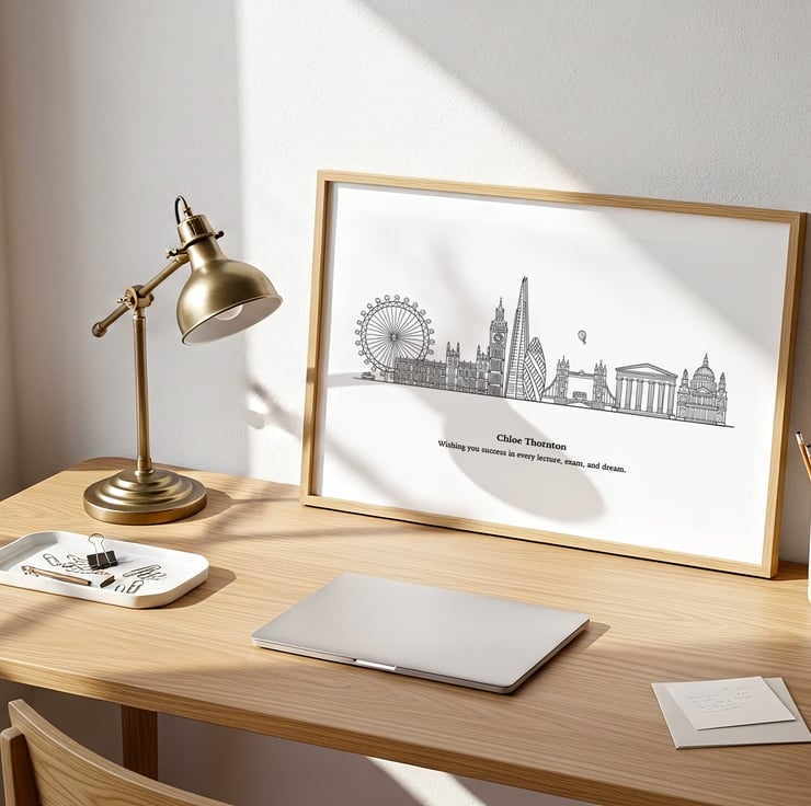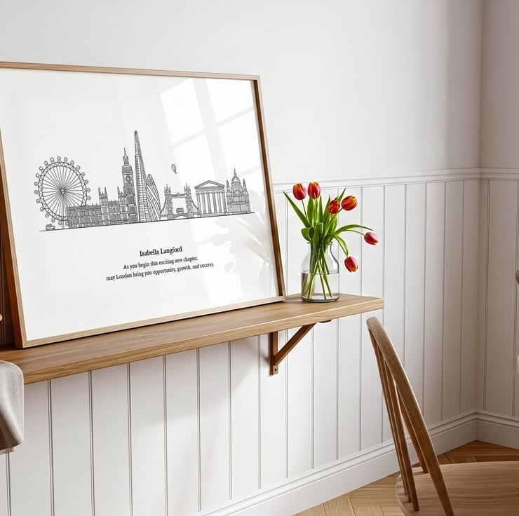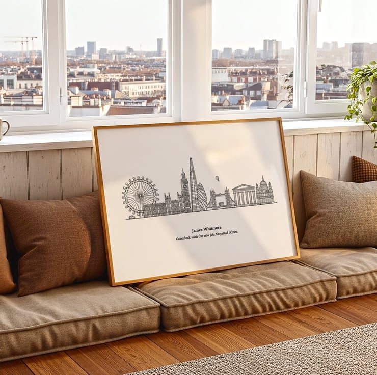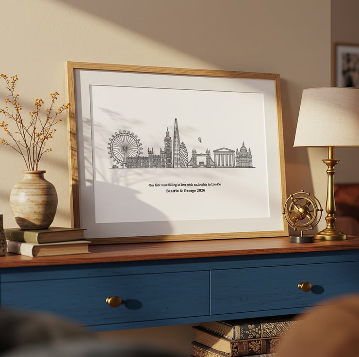 This hand drawn London skyline print captures those memories in a timeless line illustration of the city’s most iconic landmarks, simple, elegant, and filled with meaning.